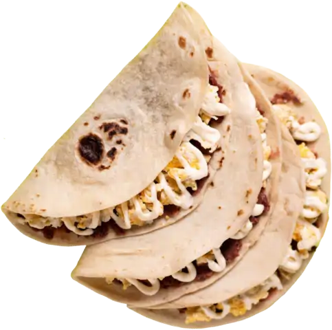 A soft flour tortilla folded around creamy beans, cheese, and egg. A beloved Honduran staple known for its simple, delicious charm.
